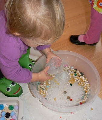 Once at their tray, they were offered sparkly paint and a brush to begin a collage.